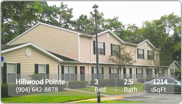 Hillwood Pointe Apartments offers spacious, 3 bedroom townhomes for residents of Jacksonville, Florida. Our apartments each come with ample cabinet and counter space, eat-in kitchens, dishwasher, refrigerator, and more! Income restrictions apply - must have an income 3 times the monthly rent. Call us today!