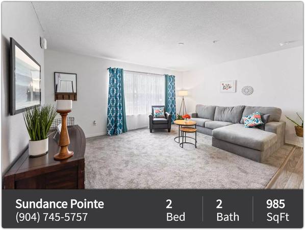 Located in the conveniently located Arlington area of Jacksonville, FL Sundance Pointe Apartments offers spacious 1, 2 and 3 bedroom apartment homes for rent with washer and dryer connections, central heating and air, and private patios or balconies in all homes. We feature a sparkling pool, a fitness center, and play areas. In the heart of Jacksonville, FL our apartment community is just minutes away from Downtown Jacksonville, Atlantic Beach, Jacksonville Beach, Jacksonville International Airport, and many options for dining, shopping, and entertainment! Call today to schedule a tour of your new home.