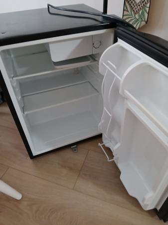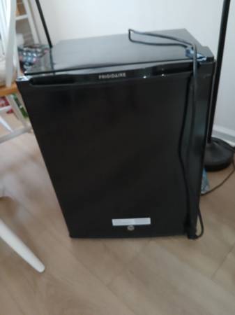 Small fridge, used to store medication no longer needed. Works great. Not sure of cubic foot but is 24"tall x19"wide. Cash sale Text nine-04-five 0 five-46 three eight.