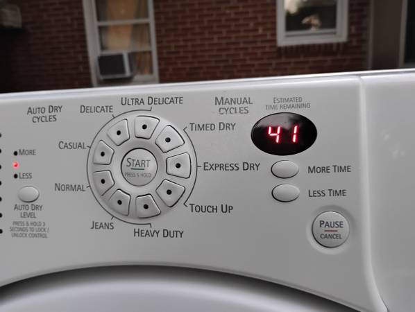 Don't just get a used dryer, it will be an older, worn out, full of lint energy hog no matter what the seller says and no guarantees. For only $349, $200 less than a Junk box new Amana entry level basic one, you can own this $1200 fully restored Kenmore elite HE3 High efficiency master piece dryer on a pedestal. It's just like getting new. All the best settings and options and looks and operates like new. Completely disassembled, fully serviced and completely tested. All that work and a 3 month warranty and lifetime customer service and only paying for all the work. Delivery and install with demonstration and only pay when you're completely satisfied is available.