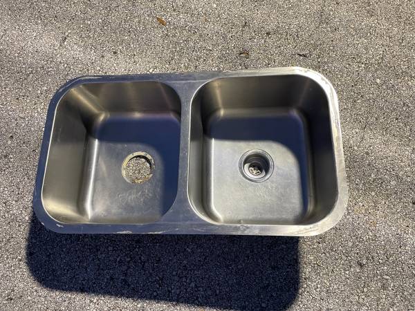 Stainless Steel Double Bowl Kitchen Sink - Used good condition as seen pictures, measured size: 32.1/2"x 18.1/4"x 8"in deep, if interested asking $25.00 please call or text: