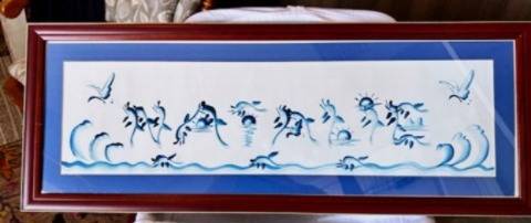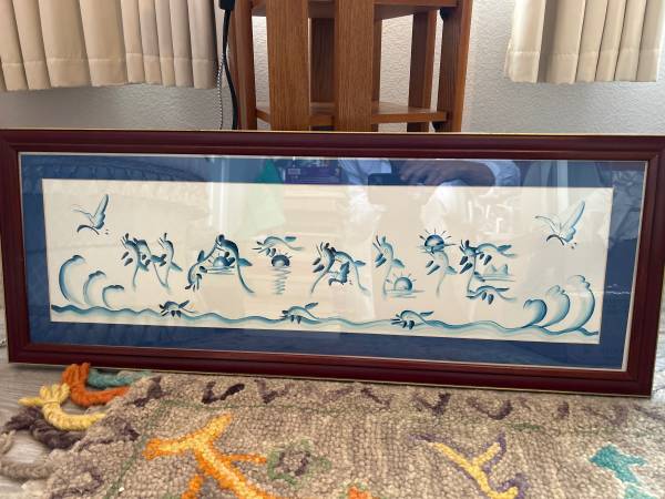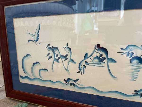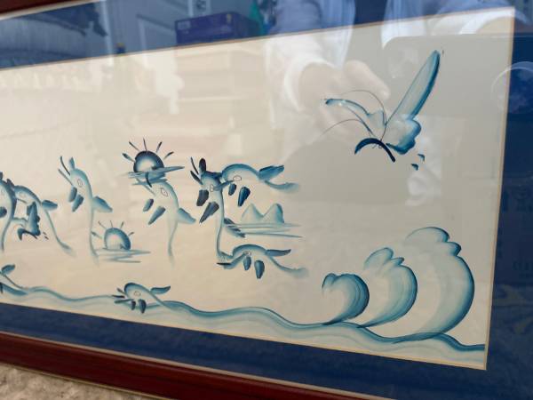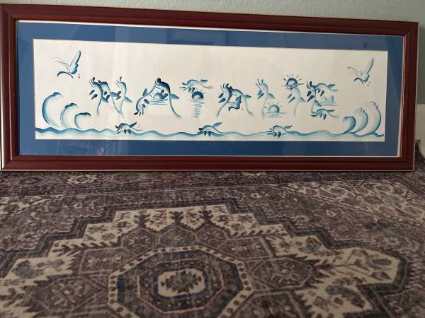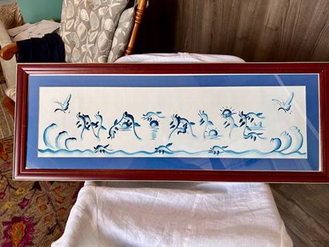 Lovely watercolor hand painted in blues. Spells Natalie. If interested will meet you at a public location. Cash only. 33x12.5 inches including frame.