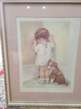 2 beautiful large vintage prints first is in disgrace 2nd the reward by bessie gutman. 18 × 21 inches. Must buy both reduced Thank you 45 each