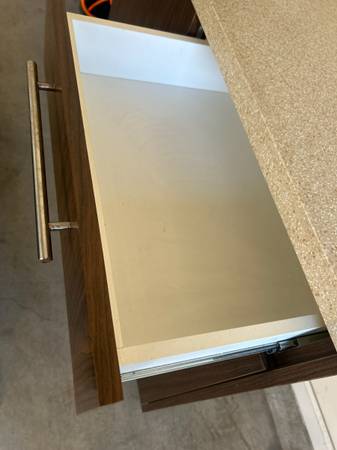 Elegant work table. 50 inch wide X 19inch long X 38 inch high. Very sturdy. Fairly heavy.