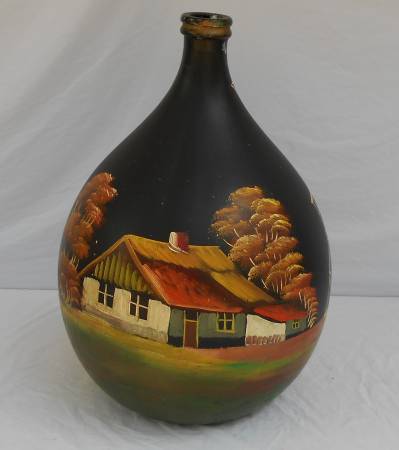 Flemish painted XL French Glass Demijohn 30 L. Bottle - $850