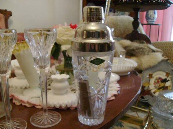 made in Ireland Shannon crystal , palm tree pattern, beautiful martini shaker, exc cond. this is brand new never used , shines so nice. i can not drink anymore, health reasons. great for birthday present . Price is firm just reduced great gift i will also throw in 2 matching crystal glasses. Thank you all 3 for 25 !!!!