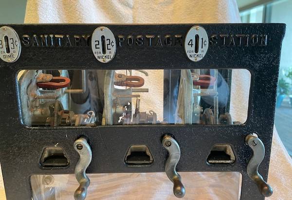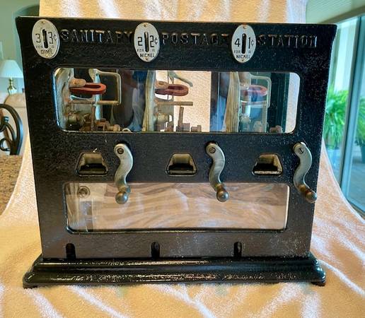Great display item for collectors of antique coin operated vending machines, postage or Post Office memorabilia, unique vintage office or game room decor.