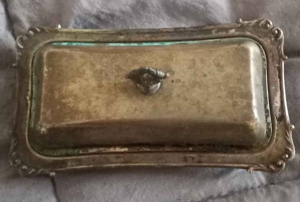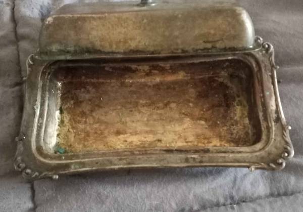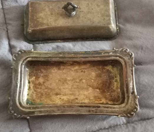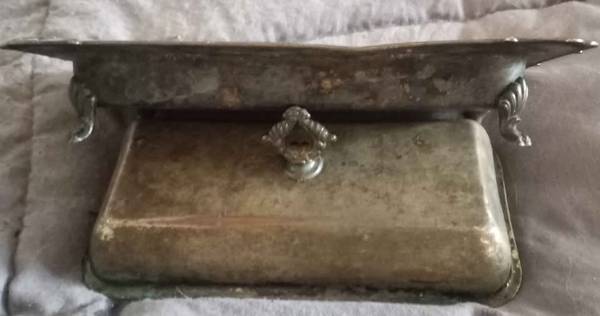 I have this antique ornate footed butter dish. It's really cool but I am moving far so have to downsize like crazy. It's gorgeous as a collector item but if you put a glass dish inside, it's very usable. Located in NW Jacksonville 32219 Please see my other ads. We are moving and need to sell almost everything.