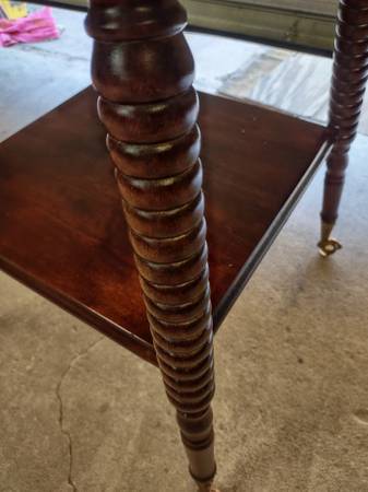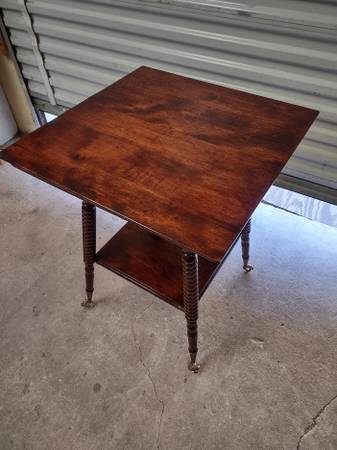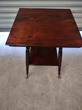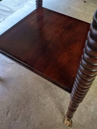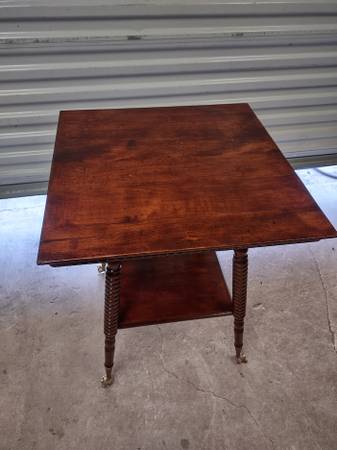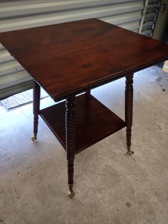 THIS TABLE HAS BEAUTIFUL ROPE DESIGN LEGS ALSO HAS BALL AND GLASS FEET. HAS BEEN PROFESSIONALLY REFURBISHED. MADE ABOUT 1920 MADE A BEAUTIFUL MAHOGANY WOOD THE TOP MEASURES 23" BY 23" THE TOTAL...