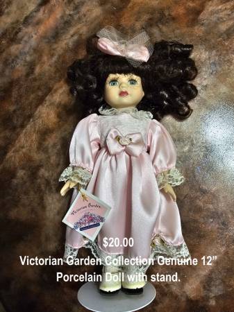 Victorian Garden Collection Genuine 12” Porcelain Doll with stand.