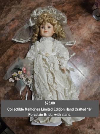 Collectible Memories “The Bride” Limited Edition Hand Crafted 16” Porcelain Bride, with stand.