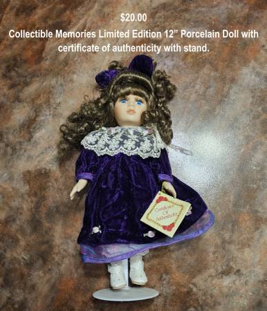 Collectible Memories Limited Edition 12” Porcelain Doll with certificate of authenticity and stand.