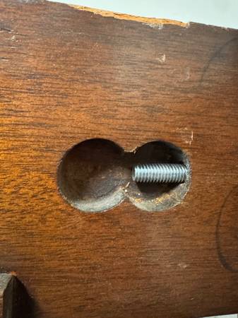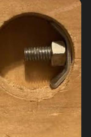 I have 6 inch long bolts that go with this, but there is a special piece of hardware that goes in the circular indentation in the wood that I do not have.