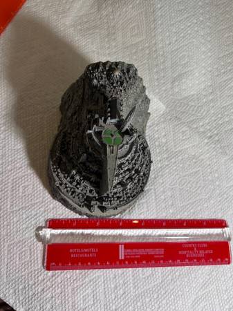 This is two pieces, the figurine with the fitted base. The base reveals a stash area where the disc was stored. There is no disc in the one. It is in excellent condition- see photos of item. Real...