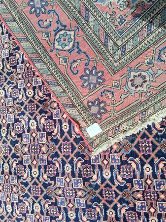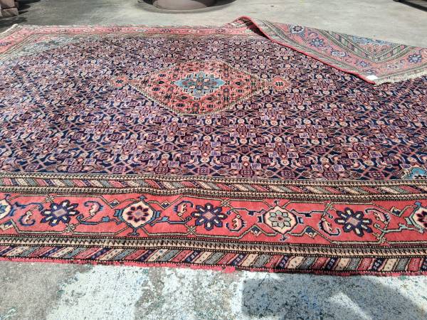 A classic design antique wool persian rug. From around the turn of the century. Good condition. Handmade. Photos taken in natural light outdoors.