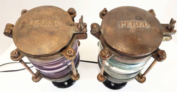 Pair of Vintage PERKO 403 All-Round Bronze Ships Lights with clear glass fresnel lenses Excellent working condition...carefully disassembled, cleaned, rewired, reassembled, and tested There is a...