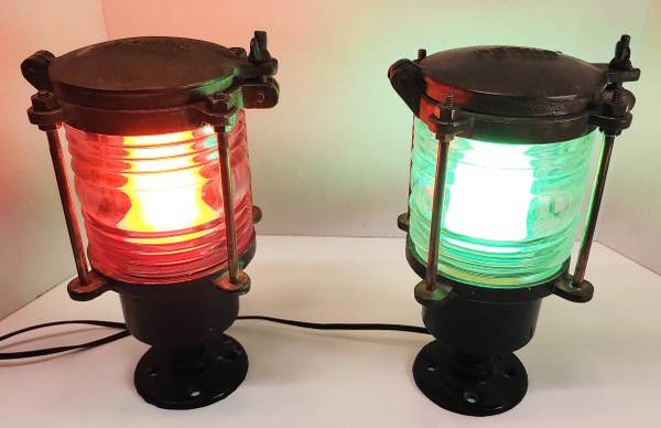 Pair VTG PERKO 403 All-Round Bronze Ships Lights Glass Fresnel...