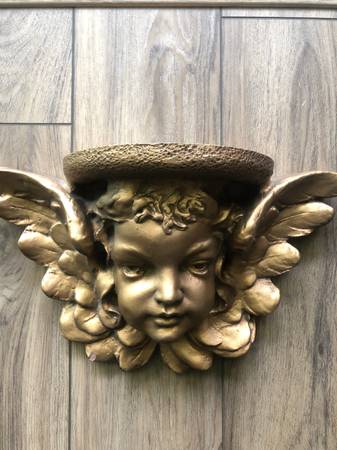 Use to showcase a small plant, an ornament, a picture. The cherub in total measures 15.5 x 9.