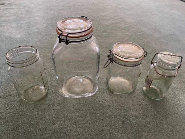 Vintage Clear Glass Storage Canisters with wire bail lids - antiques...