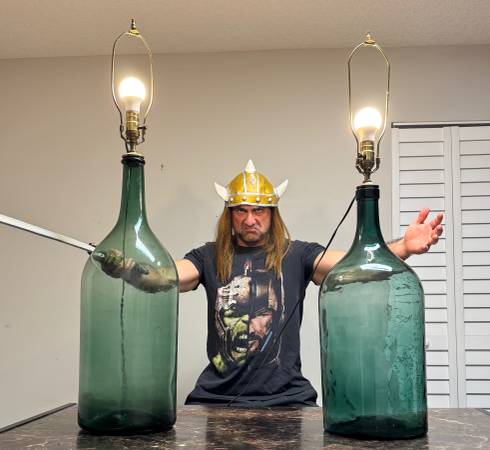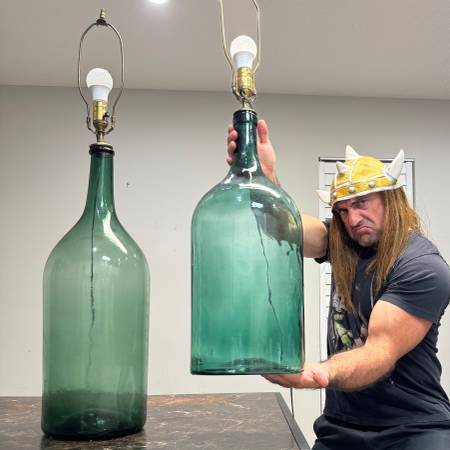 ANTIQUE ITALIAN DAMIGIANA HAND BLOWN GLASS OLIVE OIL BOTTIGLIONI CONVERTED INTO LAMPS!! ESTATE OF A FAMILY OWNED VILLA IN ITALY!! ๐ฎ๐น These are really cool old antique olive oil DAMIGIANA (Italian...