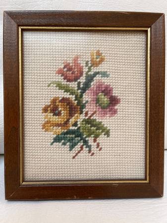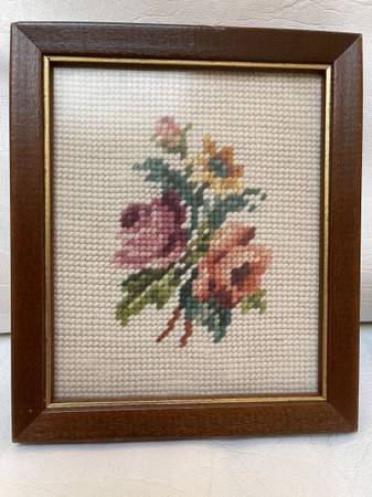 Two small framed hand-stitched needlepoint floral pictures