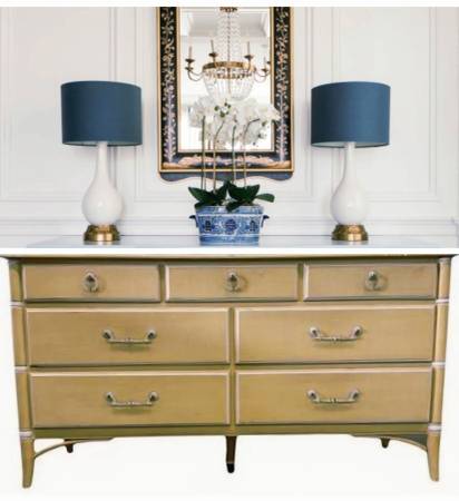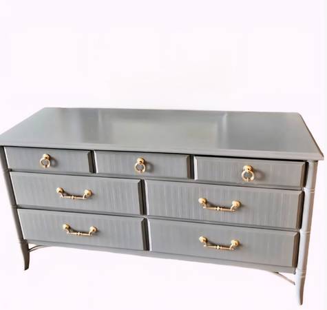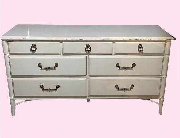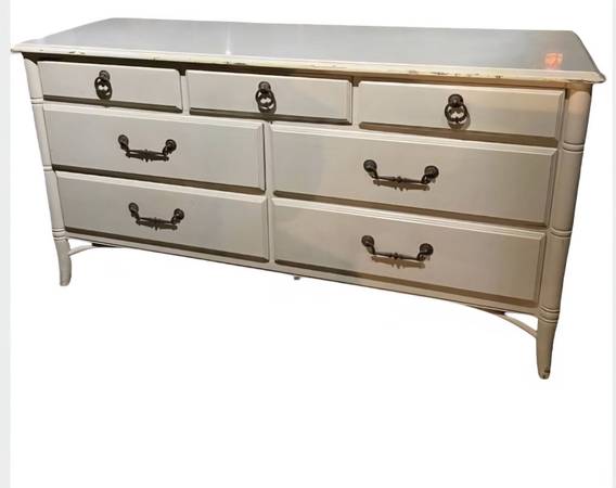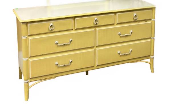 Vintage faux bamboo solid wood credenza 7 drawer dresser by Thomasville 56 long 18 deep 30 tall Real wood.
