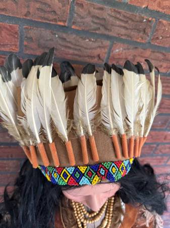 You get everything shown in photos. Doll is not in excellent condition! A few of the feathers are missing from headband and headband is held in place with a bobby pin.