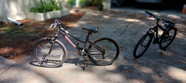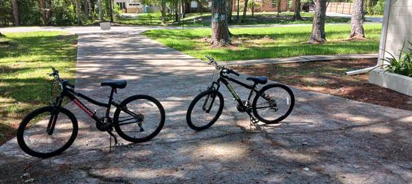 START CHRISTMAS SHOPPING NOW! Boys and girls Mongoose Excursion 21 speed bikes with Excursion Racing Shocks 24 inch wheels. Approximately 4 years old - grandkids rode them to school for 3 months - kept in garage - look brand new. Bikes new are $148 each at Walmart. Will sell both for $150 or individually for $100 each.