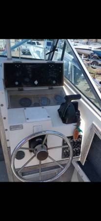This is a 22 ft Grady White. It was a trade in from one of our customers. We replaced anything that was needed. Boat sat up so we didn't take any chances. The engine has good compression with no problems. We rebuilt carbs, sealed lower unit, new waterpump, spark plugs, power pack, gear oil, starter. Every part below are new parts: