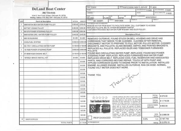 Engine pulled by Mercruiser dealer in 2020 and completely checked over.