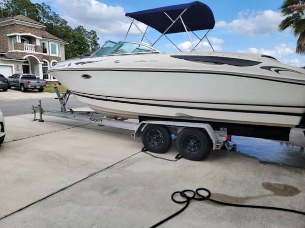 EXCELLENT CONDITIONS LOT OF EXTRAS, NEW UPHOLSTERY, ELECTICAL OPENING ENGINE COVER, COURTESY LIGTHS VOLVO PENTA 5.7 DUOPROP STAINLESS STILL PROP, GARMIN NAVIGATION GPS WITH ROCKET TRAILER INCLUDED