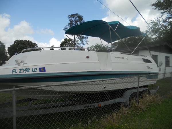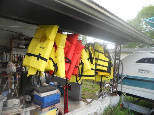 Bimini top. Anchor with 100' of rode. 12 life vests. Fenders and dock lines.