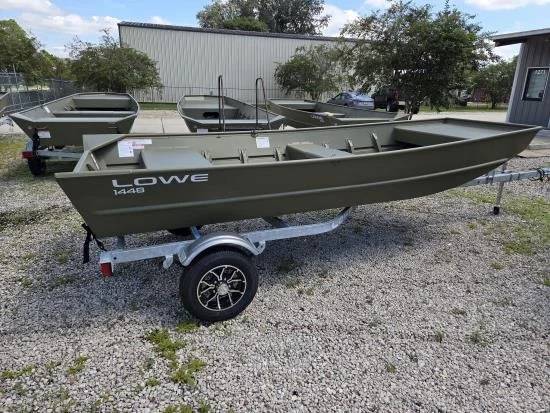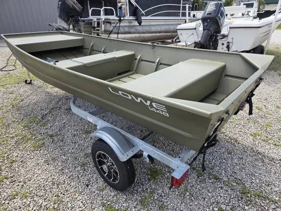 Durable, stable, and roomy, the L1448 Jon boat is a compact workhorse for all your boating needs. The strong and stable aluminum Lowe® L1448 Jon provides lasting performance and superior value in an affordable package. Enjoy features like a center seat with livewell/storage compartment, two strong lifting handles, flat-bottomed hull design for a smooth, dry ride. Includes galvanized Trailer with LED Lights and Tie Downs.