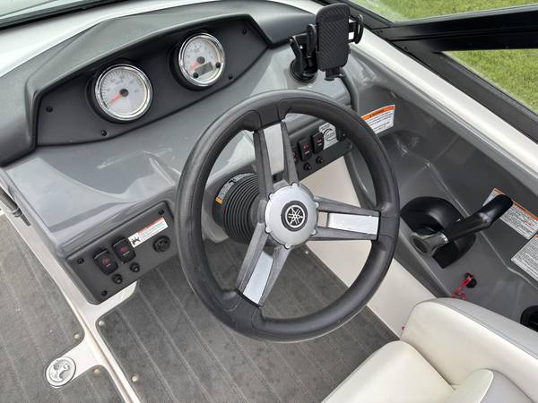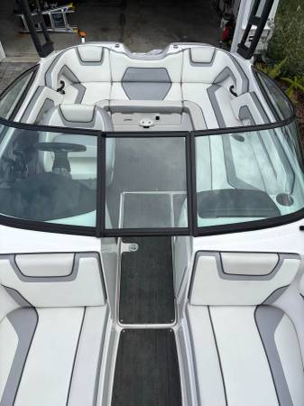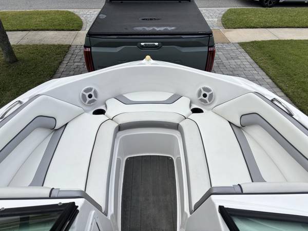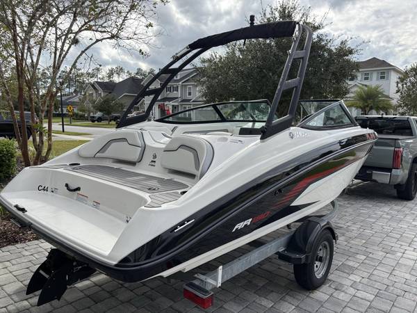 Clean AR190, garage kept, always cleaned and engine flushed, only 82 hours. Fits a standard garage with wake tower down. Added the Thrust Vectors which greatly improves control at low speeds (docking, trailering, etc.). Also added Kilz soundproofing to engine compartment. Includes OEM travel cover, Bimini for wake tower, tube and tubing towline. Switching to a fishing boat instead. Title in hand.
