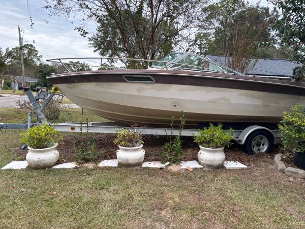 Bought this boat because it’s clean and spacious but never had a chance to use it. It has a great trailer and handy bathroom you see in the picture behind the grey door. Sink needs some work and music sound box if you need sound. The previous owner say he did not start it for a long time that’s why he think it’s clog. I did not have a chance to get it look it .