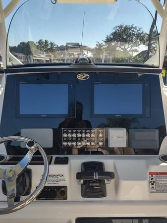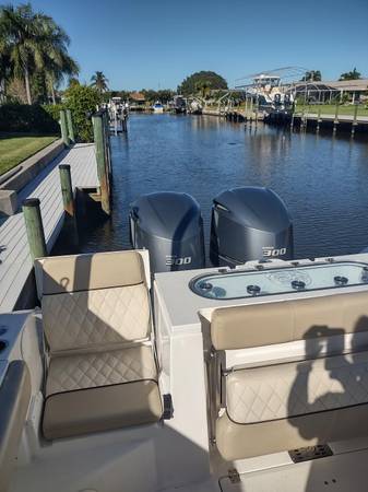 TWIN 2018 300 YAMAHAS, FISH DOOR, 2 AERATORS, WINDLASS, BATTERY TENDER, OPTIMUS EPS STEERING, HEAD SYSTEM(never used) JL AUDIO SYSTEM W/8 SPEAKERS, 2 GARMIN GPSMAP XSV, FULL COVER, CUSTOM HELM COVER, BIMINI TOP.