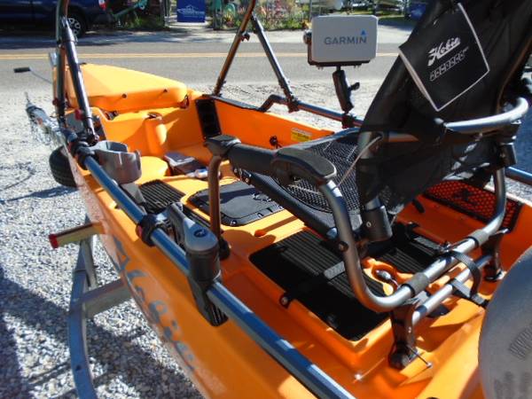 2021 Hobie Pro Angler 14 Kayak - Excellent Condition, Very Low Use in Fresh Water, Loaded with Extras - Bixpy 12V Electric Rear Motor, H-Rail Arch, Bimini Top, 4 Rod Holders - Livewell, Garmin 7 in....