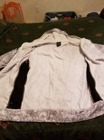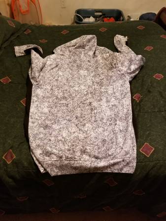 Hoodie is new... Mens or Women’s… Colors are black/White/Grey... 100% Polyester... Size(16) Large... Very clean... All offers are considered... I meet my customers till 8pm...