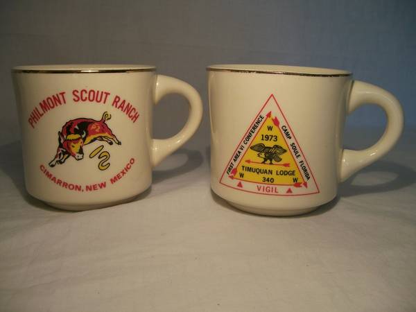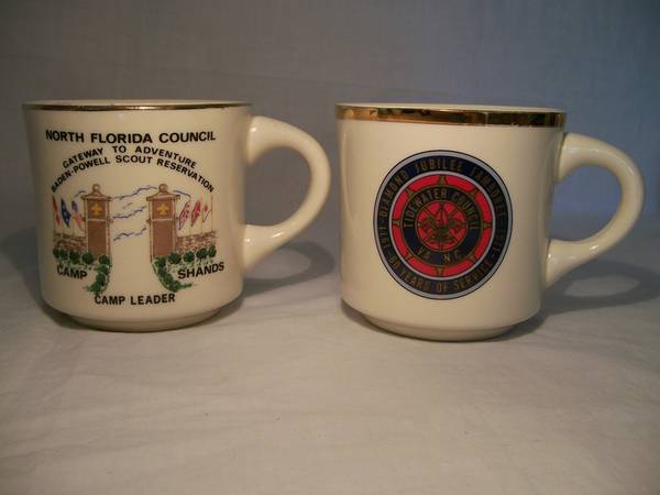 Boy Scout Coffee Mugs/Cups. Primarily North Florida Council, Boy Scouts of America, from the 1970s, with no chips or cracks, including: Philmont Scout Reservation 1973 Area VI Conference Timuquan...