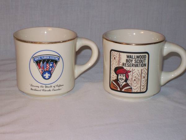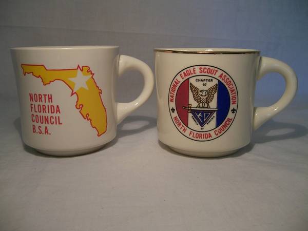 Boy Scout Coffee Mugs/Cups. Primarily North Florida Council, Boy Scouts of America, from the late 1960s and ‘70s, with no chips or cracks, including: