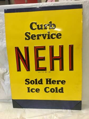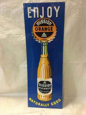 ++++++ Antique advertising signs; all are believed to be original vintage. All are tin except the last 3 listed. Nehi soda NOS; 20x27.5 $400 Butter-Nut Bread; vg; 27x13. Sold Mission Orange; excl;...