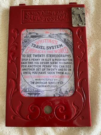 Nice find for the collector of antique optical viewers, stereoscope, and vintage coin op coin operated vending machines, amusement games and arcade items.