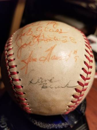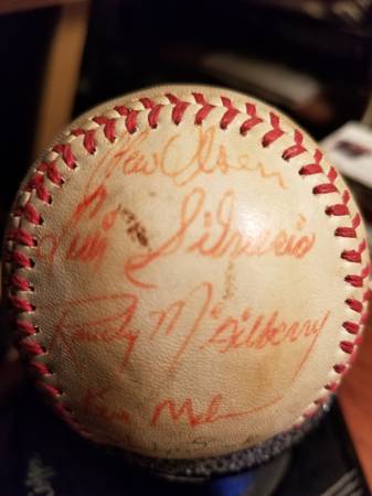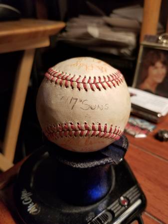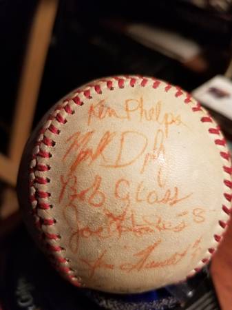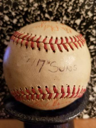 1977 Jacksonville Suns Autographed Baseball is in good condition... Signed by 11 win pitcher Bill Paschall also Randy McGilbery, Rich Gale, Ken Philips, Luis Silvero, and Bob Glass plus a few more... . Some Autographs are a little faded... Majority are visible... Signatures were checked... All offers are considered... I meet my customers till 8pm...