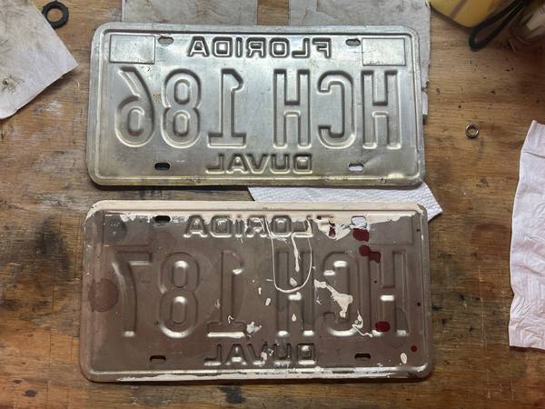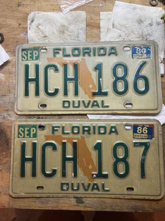 $25 for the pair. This is among the first plates issued when Florida went to the new format in 1976. It started out as three letters, three numbers, then when the combinations ran out, Florida reversed it and went with three numbers, three letters. When that combination ran out, Florida started scrambling the letters and numbers.