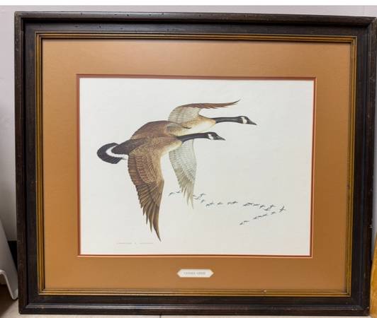 Geese in Flight!!Vintage, Signed, Wildlife Art Print - collectibles...