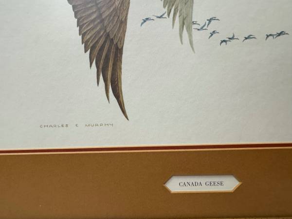 Geese in Flight!! Vintage signed Charles E Murphy wildlife art print Matt and framed Lithograph print Excellent condition Framed measurements: 29 3/4 inches wide 25 1/4 inches tall