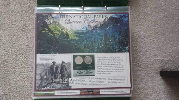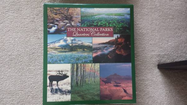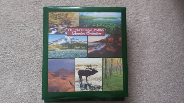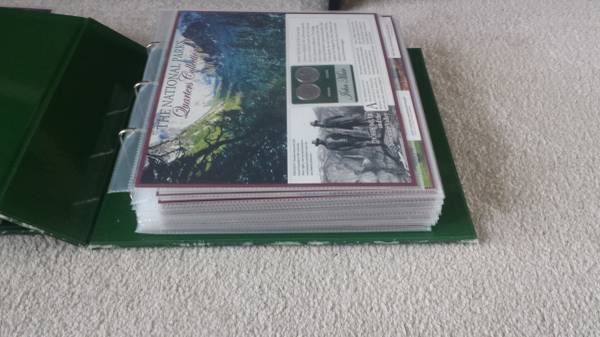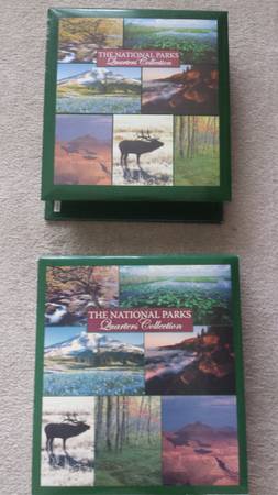 The National Parks Quarters Collection (56) pages w/Uncirculated Quarters in 2 coins per page - 3 ring binders. Both binders are a little beat up on edges. Plus TWO pages did not come with a vinyl cover. Pictures of both are included. $30.00 for both books OBO!!! Cash only. Exact change only.