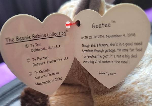 Vintage Retired Original (PE) Pellets Beanie Baby “Goatee.” 5th Generation. DOB: November 4, 1998.