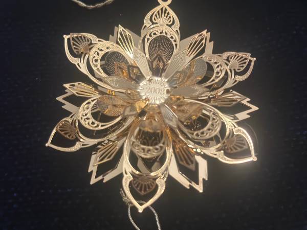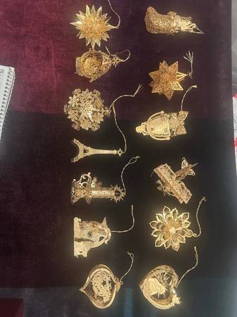 13 genuine, gold Danbury Mint ornaments. These are beautiful ornaments, I no longer need. Original box included. These ornaments hold their value and this years ornaments are going for $50.00 a piece. A worthwhile investment.