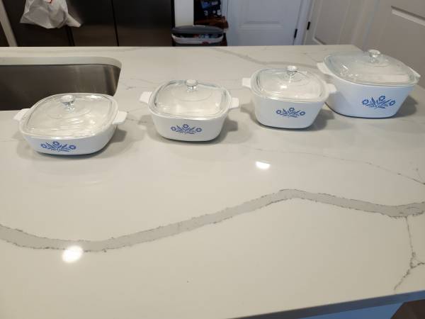 (4) Four piece corning ware set with lids asking $50.00 for the set I WILL BLOCK SCAMMERS